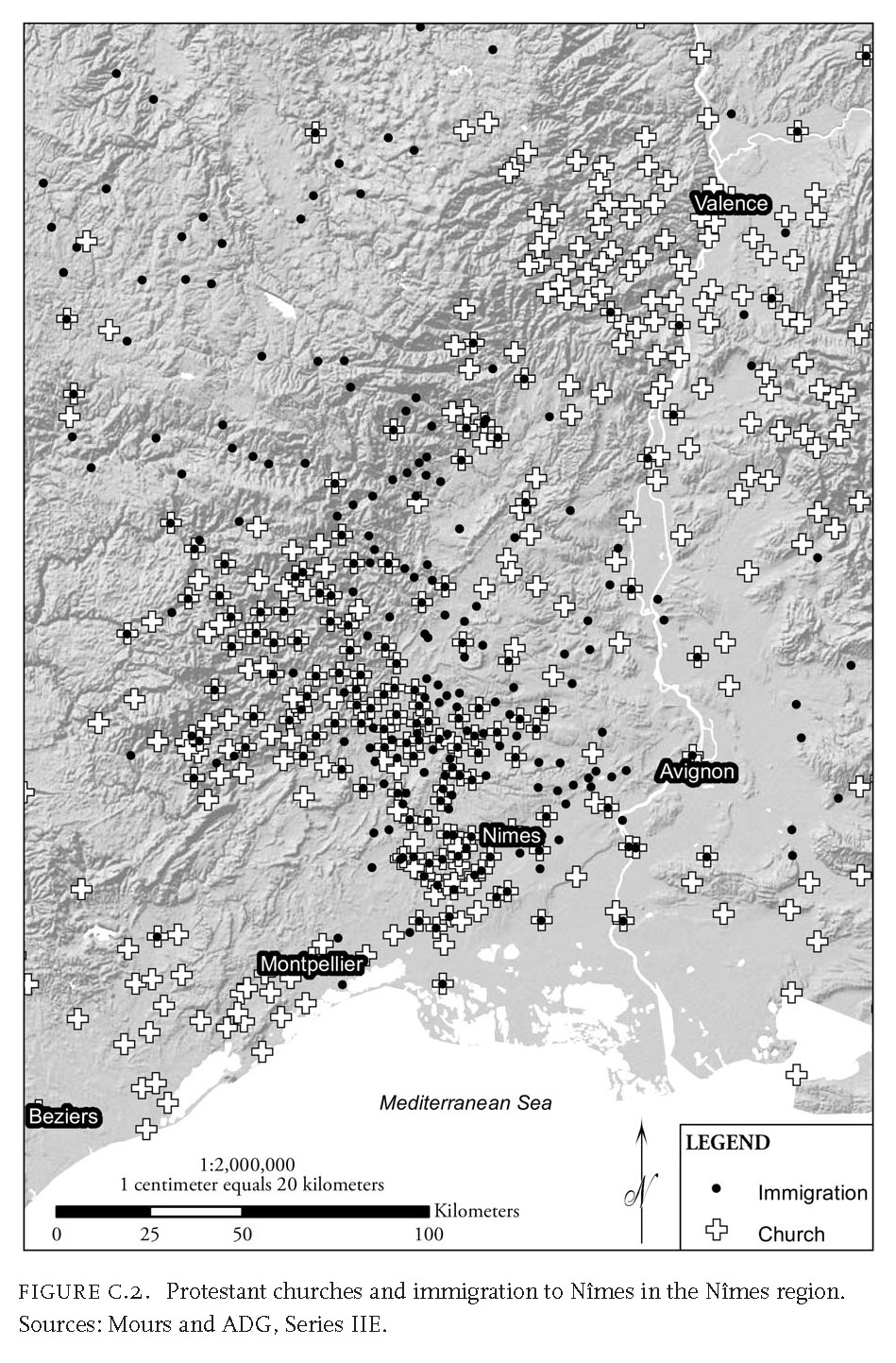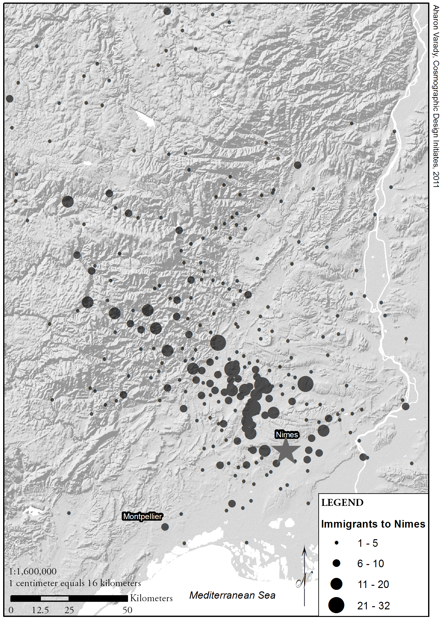 When late last year my friend Dr. Allan Tulchin asked for my help preparing two maps for a book on the history of the Protestant Church in medieval France, I was so happy to oblige. I love maps and I love historical research. Preparing these maps would exercise my mapping skills using GIS software and provide some professionally oriented extracurricular work during my intense program in Rabbinic midrash at Yeshivat Hadar. Six months later and Allan showed me proofs of his book, That Men Would Praise the Lord: The Triumph of Protestantism in Nîmes, 1530-1570 now available from Oxford University Press. I found the maps I prepared in his concluding chapter.